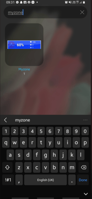 Search for Myzone and add the widget wherever you want it on your home screen.