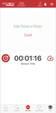 Picture-in-Picture mode allows you to view your Myzone effort tile while accessing other apps on your mobile device. With your Myzone belt activated and connected to the app, tap My Tile then press your tile--you will see a prompt to enter PiP.