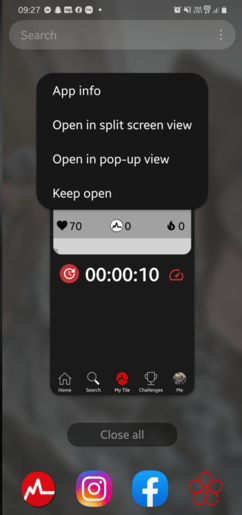 When you select the Enter Picture in Picture prompt, your live effort tile will pop out of the Myzone app so you can access other apps on your mobile device.