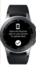 Your watch will automatically upload via your phone if you are connected. When not in range of your phone a message will be displayed to confirm there are sample stored. To upload simply open your Myzone phone app and refresh the home feed, your workout will be shown shortly.