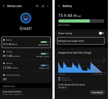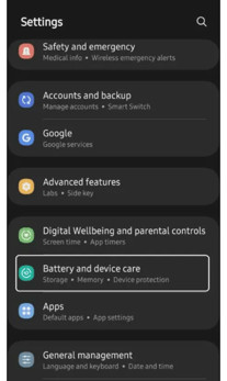 Step 2: Open the Settings app and go to Battery and Device Care>Battery>Background usage limits