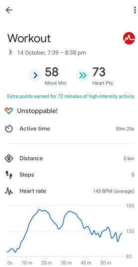 Here's how a workout tracked by the Myzone app might appear in Google Fit: