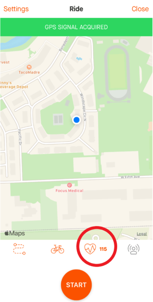 Step 3) You are ready to go! Your heart rate will now display on the record screen next to the HR icon.